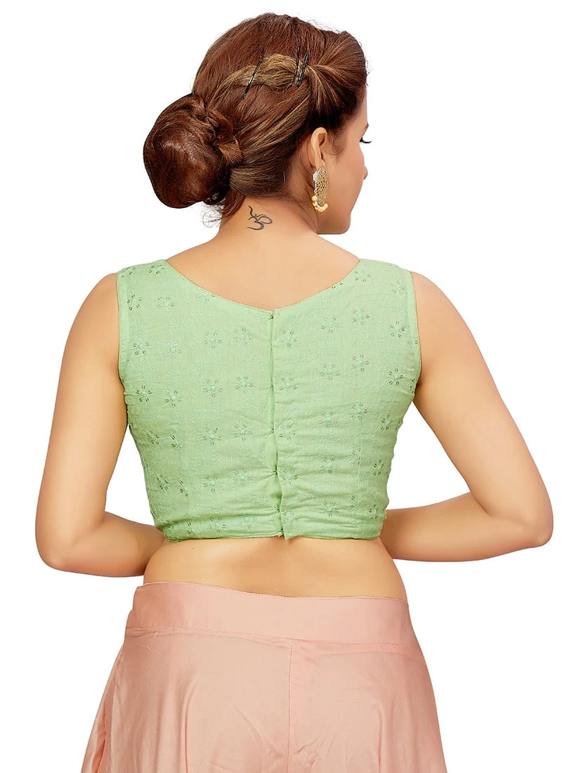 In summary the Green Blended Cotton Sequins Blouse is a masterpiece of design and craftsmanship. Its rich green colour intricate sequin work comfortable fabric and versatile design make it a musthave addition to any fashion enthusiasts wardrobe. Embrace the elegance of this blouse and let your style shine with its captivating allure.