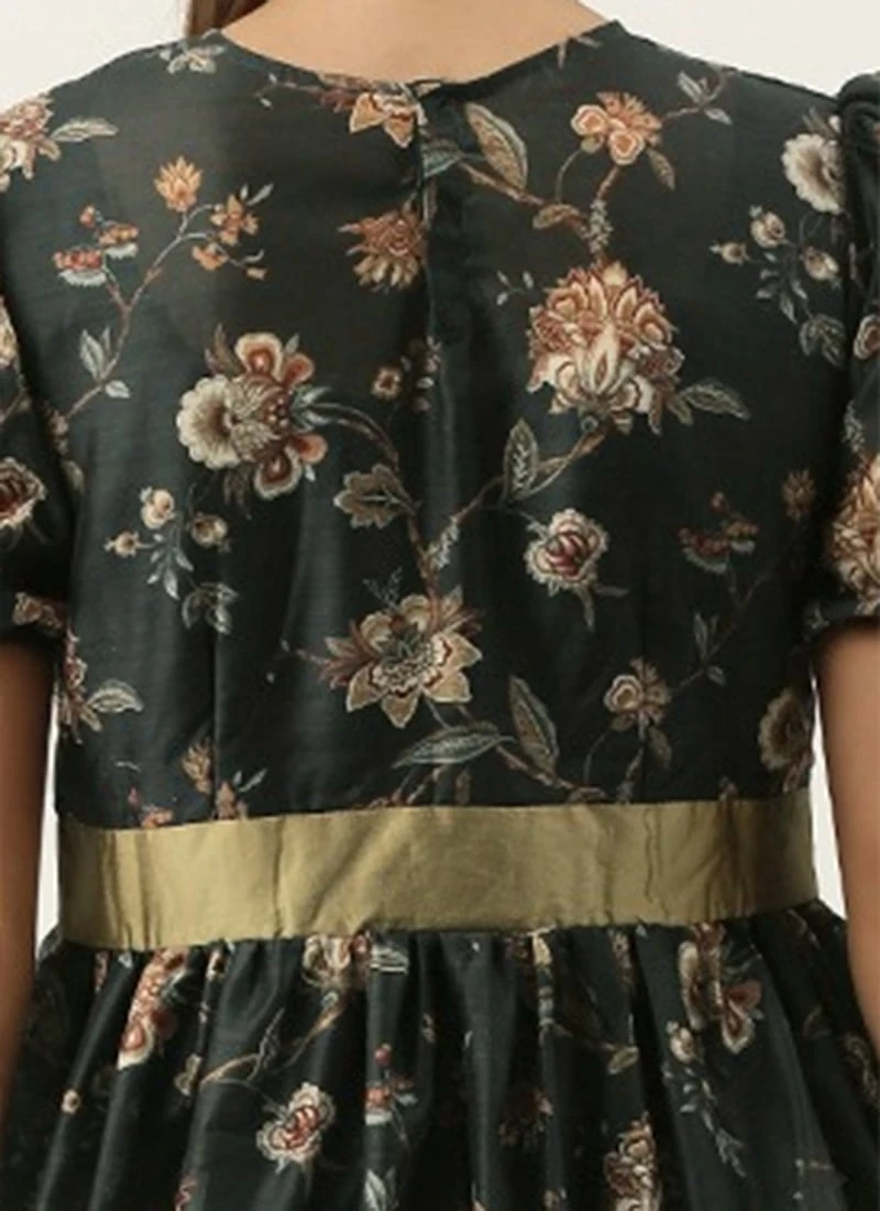 Green Chanderi Silk Puff Sleeve Dress After Six Wear -ZariGrace Shop Green Chanderi Silk Puff Sleeve Dress DRBS02201263 rrc3