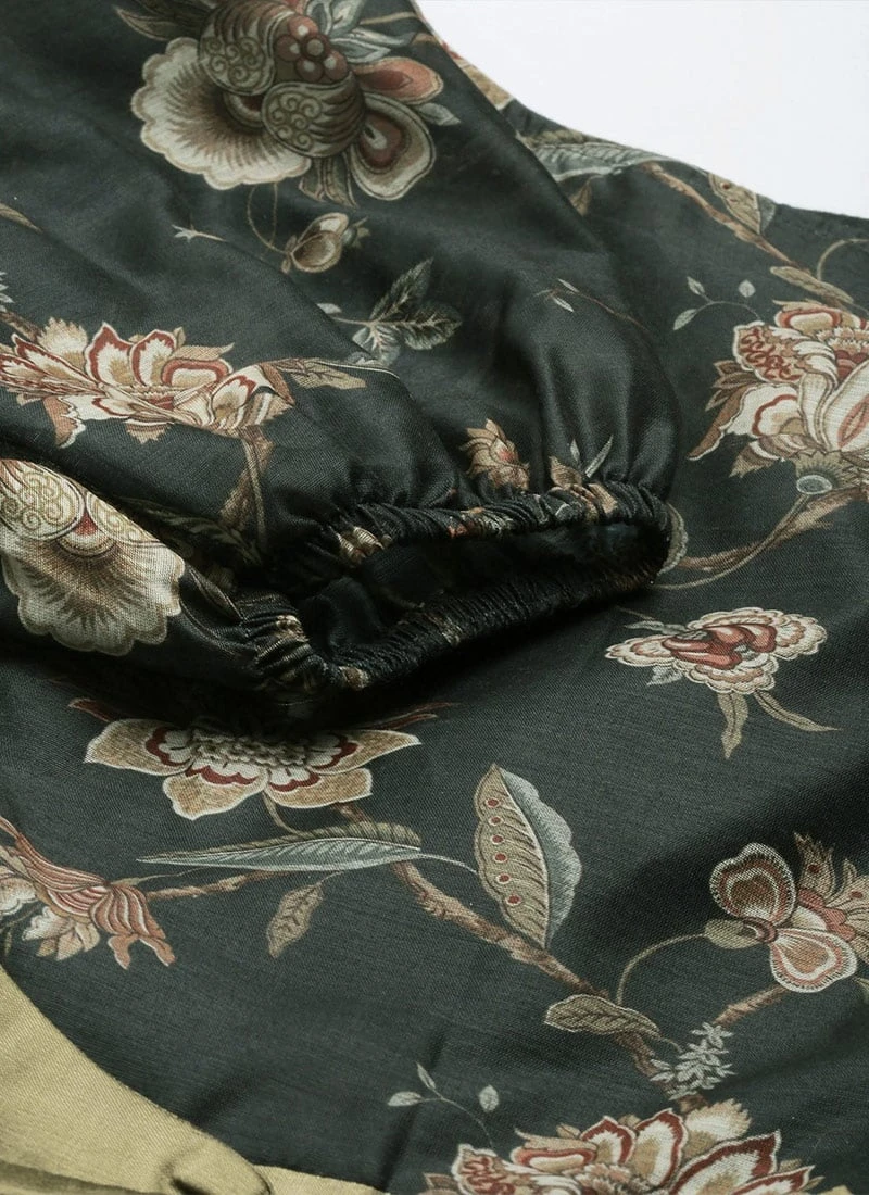 Green Chanderi Silk Puff Sleeve Dress After Six Wear -ZariGrace Shop Green Chanderi Silk Puff Sleeve Dress DRBS02201263 rrc1