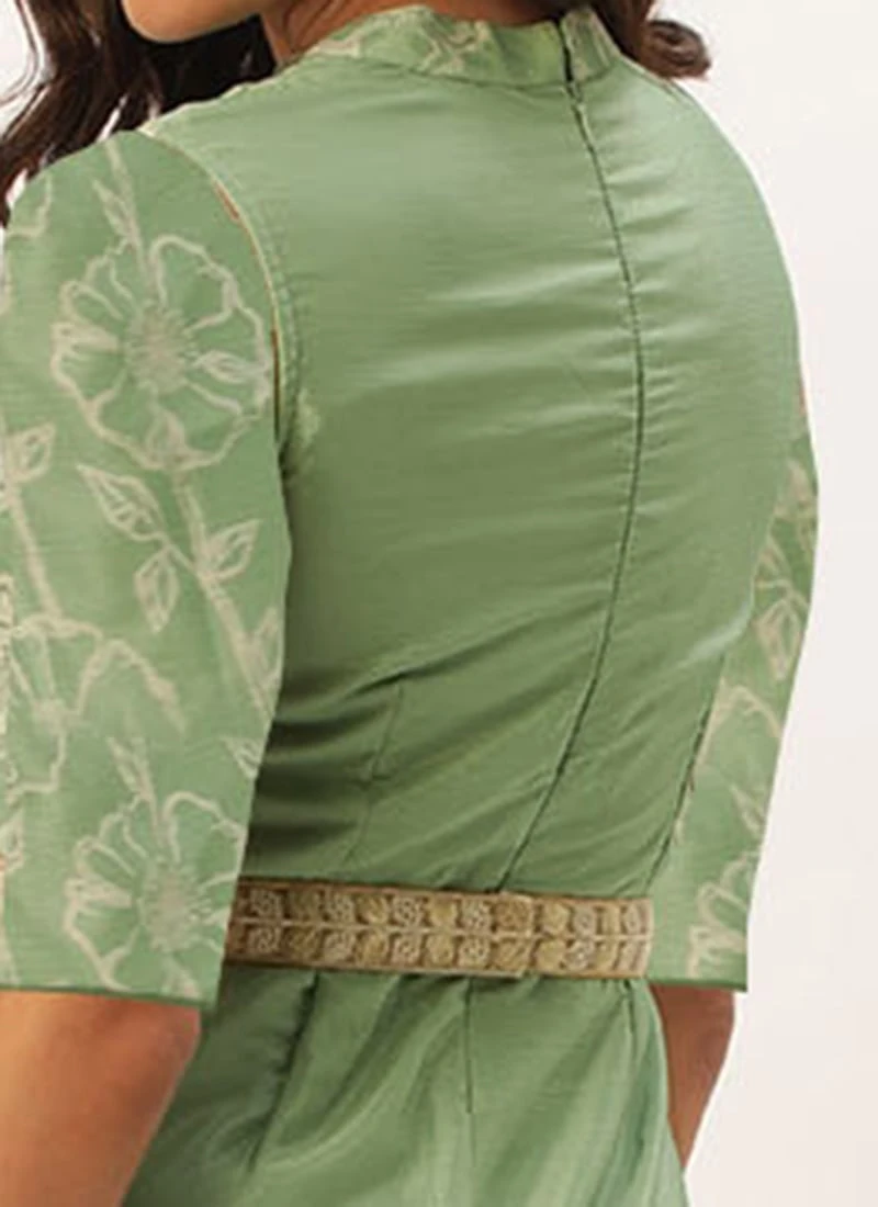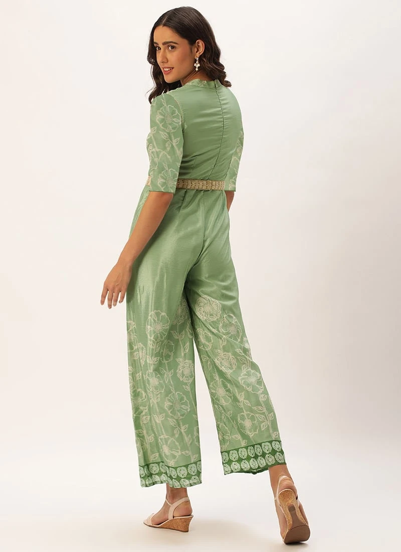 Green Digital Print Chinon Jumpsuit Festive Wear