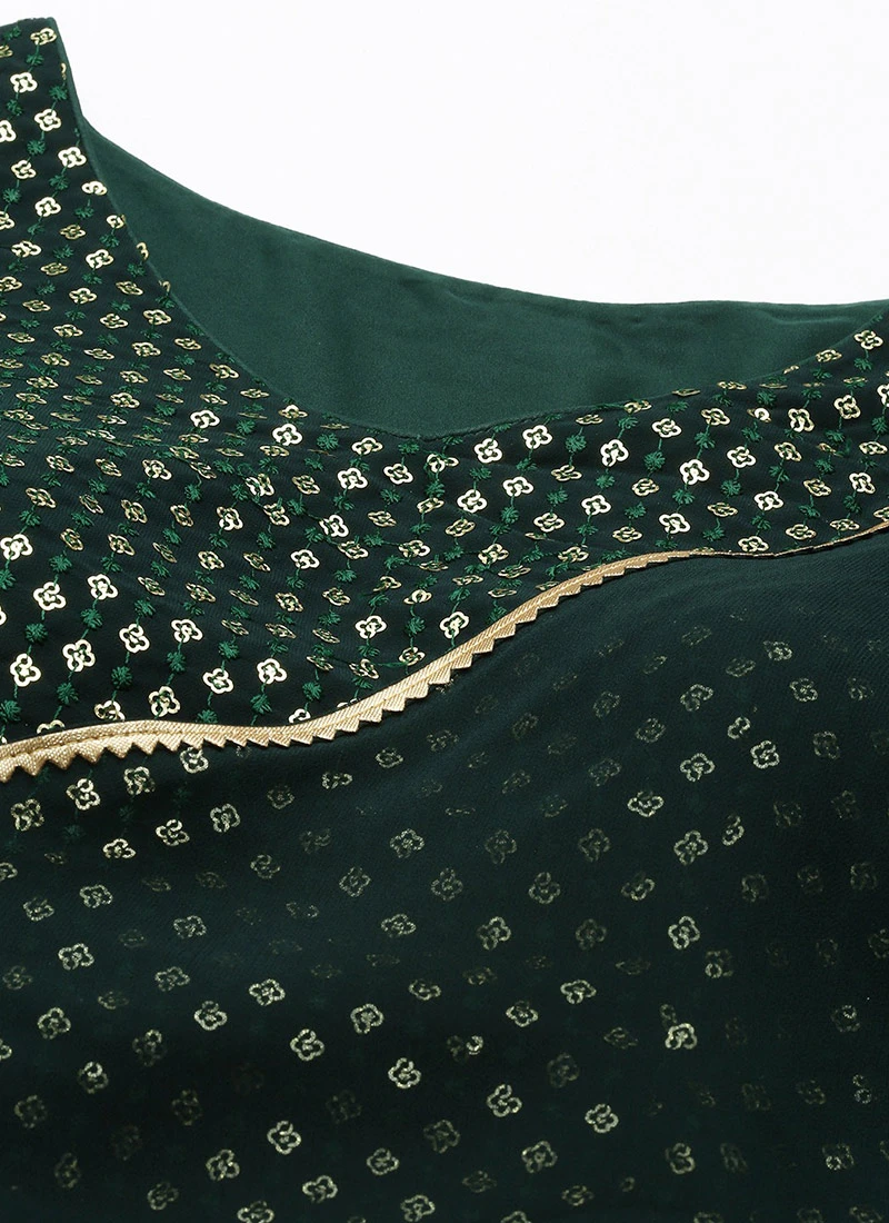 Green Embroidered Georgette Kali Flared Gown Party Wear