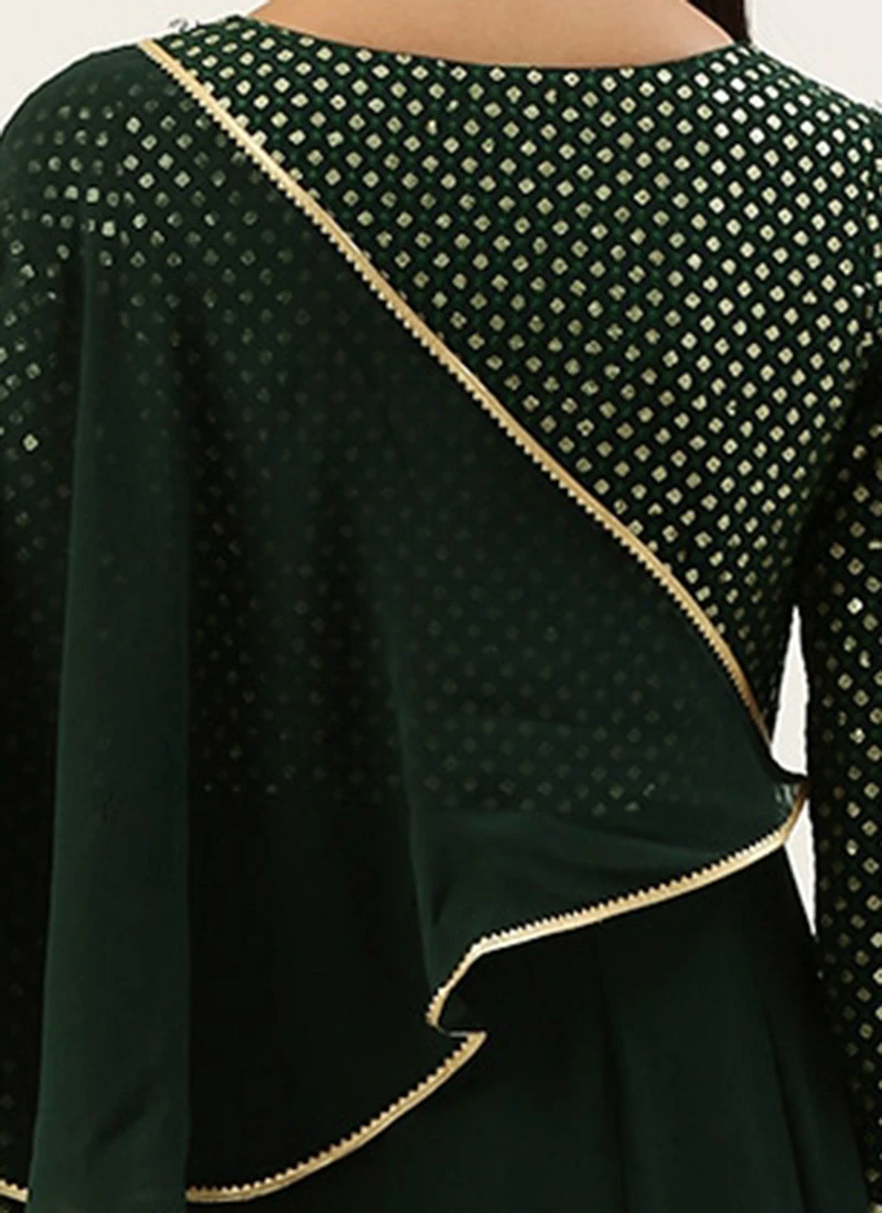 Green Embroidered Georgette Kali Flared Gown Party Wear -ZariGrace Shop bust size measure image 521
