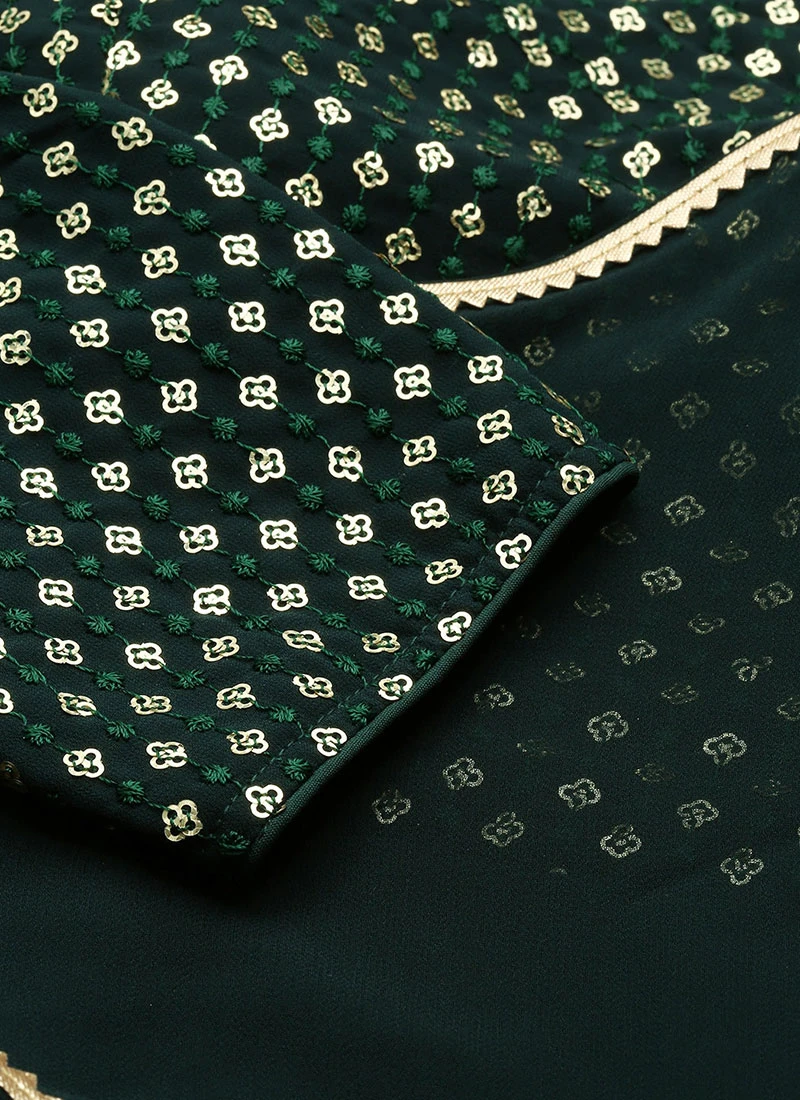 Green Embroidered Georgette Kali Flared Gown Party Wear - Image 3