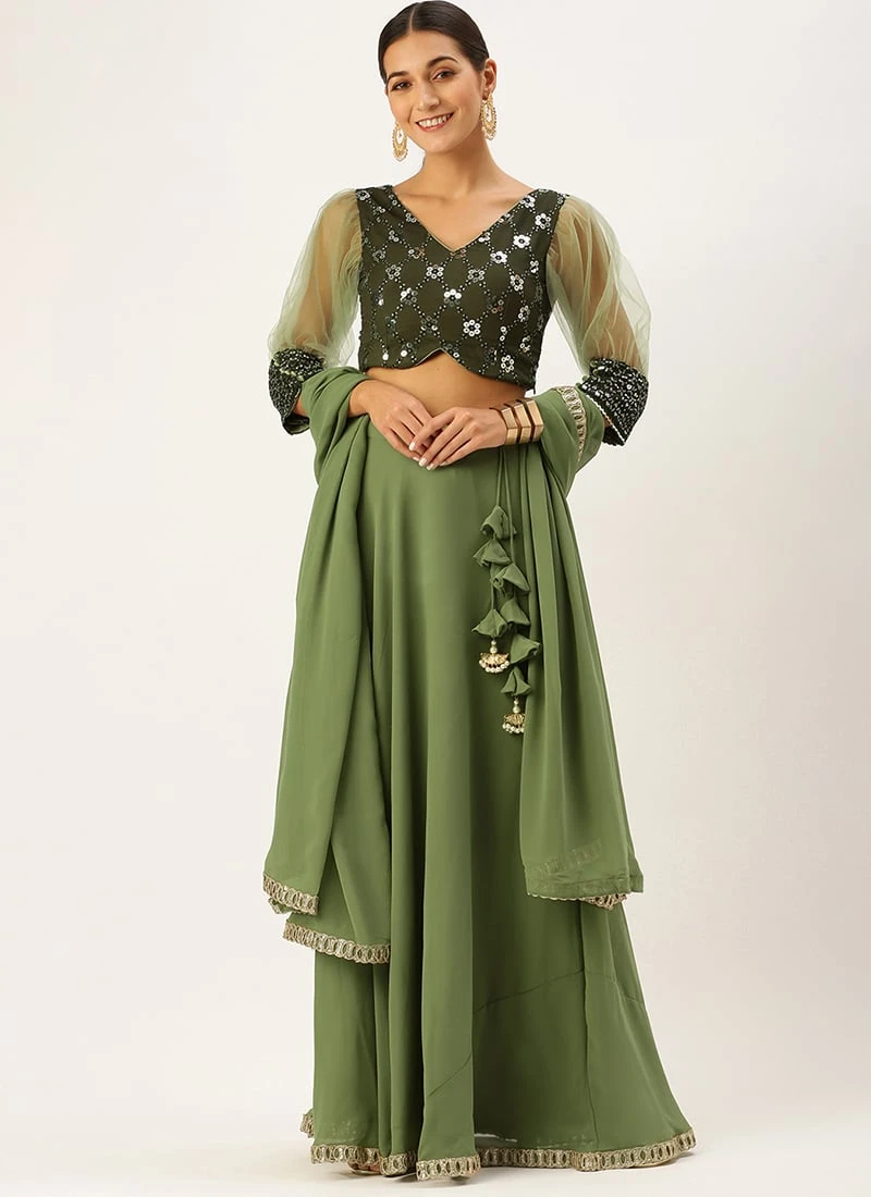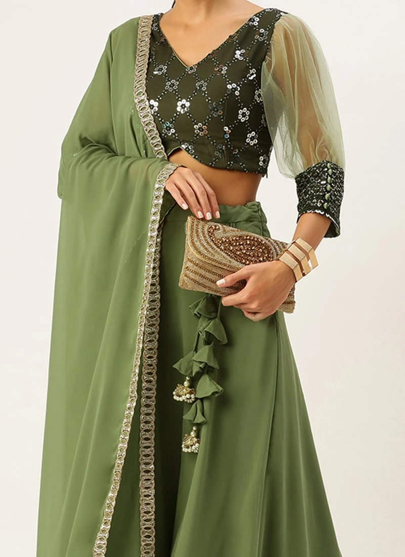 Green Gathered Sleeves Lehenga Festive Wear Wedding Wear