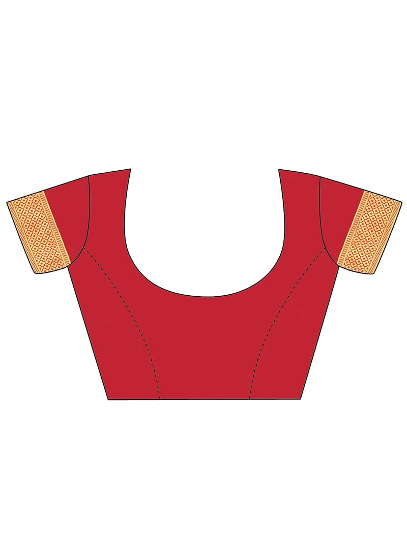 Comes with unstitched blouse fabric. To have the blouse stitched, please select the custom tailoring options. Blouses with elaborate patterns and colors are used for photo-shoot. Color and pattern of the blouse might not be as shown in the image.