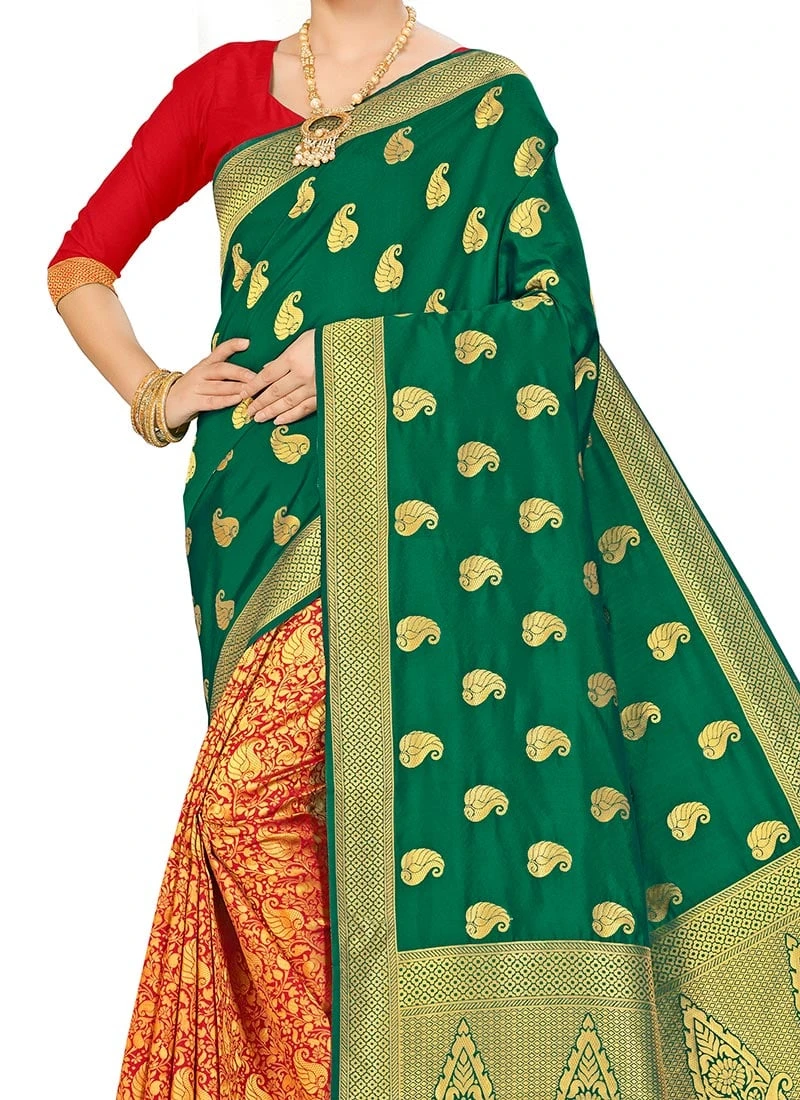 Green N Red Banarasi Silk Zari Work Saree Festive Wear