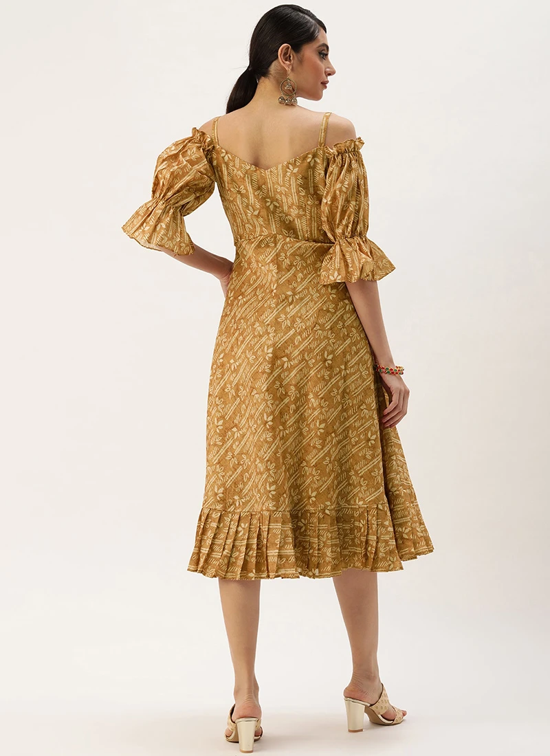 Green Printed Art Silk Cotton Maxi Dress After Six Wear Festive Wear