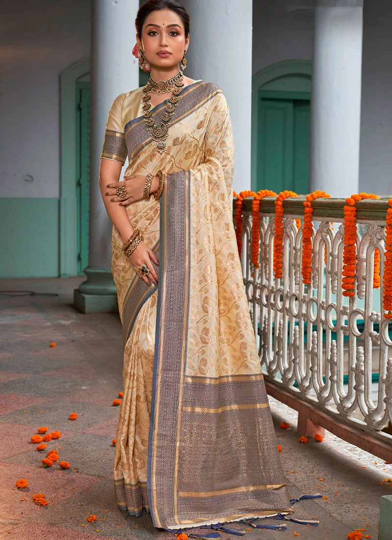 What sets the Benarasi saree apart is its ornate zari work and exquisite craftsmanship. The pallu border and body of the saree are adorned with intricate gold and silver zari metallic thread embroidery creating mesmerizing patterns of flowers paisleys and traditional motifs. The zari work reflects the artistry and skill of the craftsmen showcasing their dedication to preserving the legacy of Indian textile traditions.