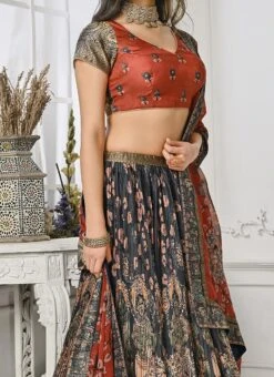 In summary the Grey Art Silk Kalamkari Print Umbrella Lehenga is a masterpiece of Indian craftsmanship and design. Its combination of luxurious fabric intricate Kalamkari print and flattering silhouette make it a musthave for anyone looking to make a style statement at cultural events weddings or festive occasions. Embodying the essence of tradition and contemporary fashion this lehenga is a testament to Indias rich textile heritage and artistic prowess.