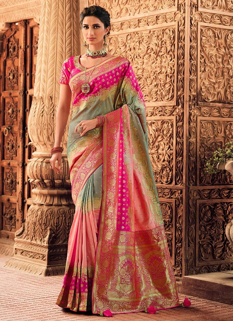 Grey Benarasi Silk Jacquard Woven Saree Festive Wear