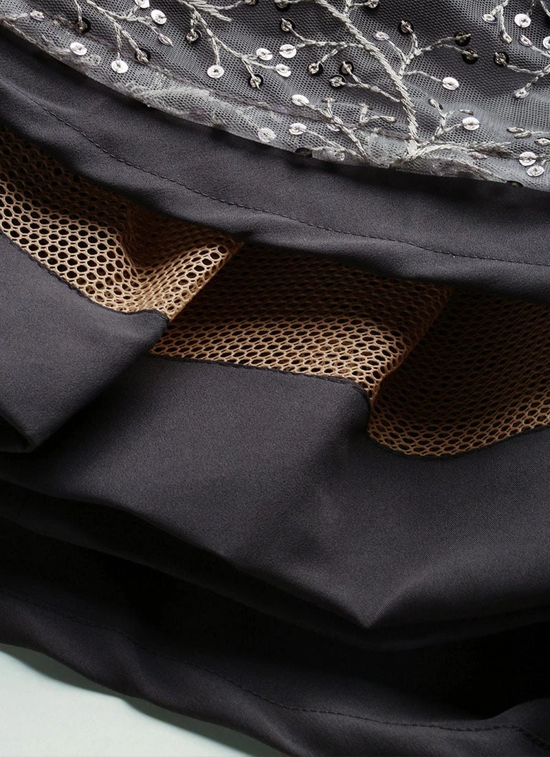 Grey Embroidered Net Tiered Gown Festive Wear - Image 4