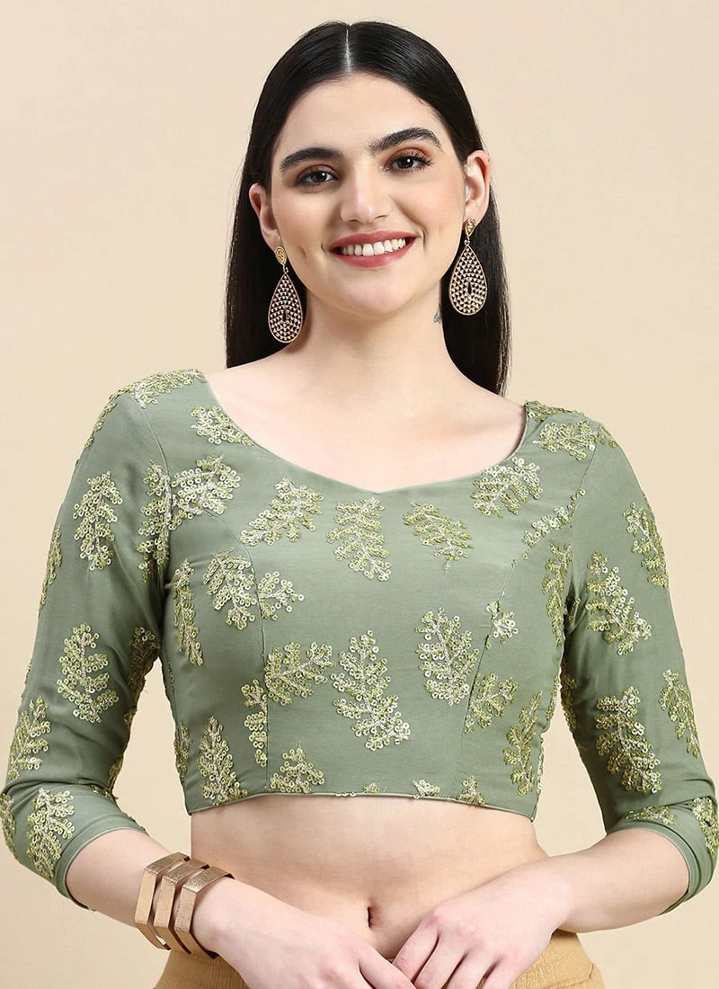 Grey Sequins Embroidered Chinon Blouse Festive Wear