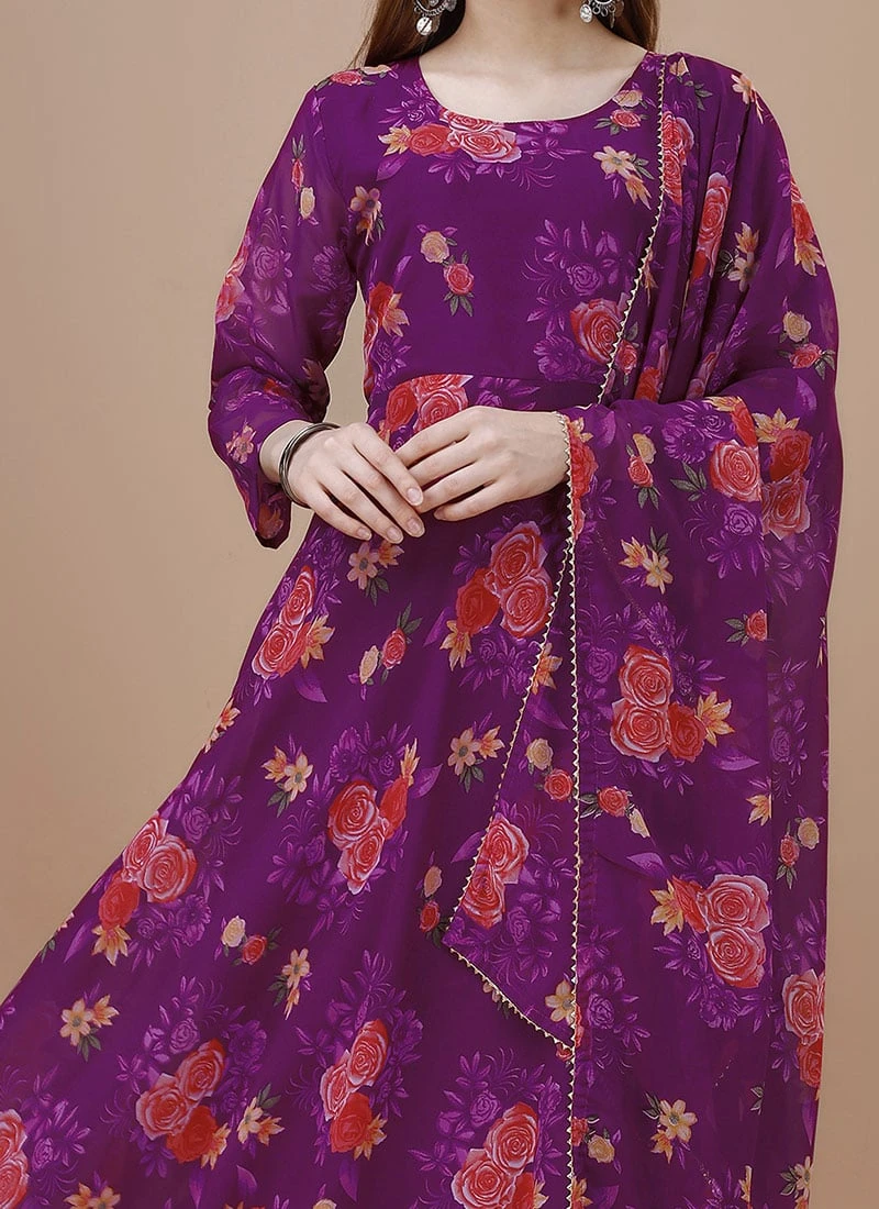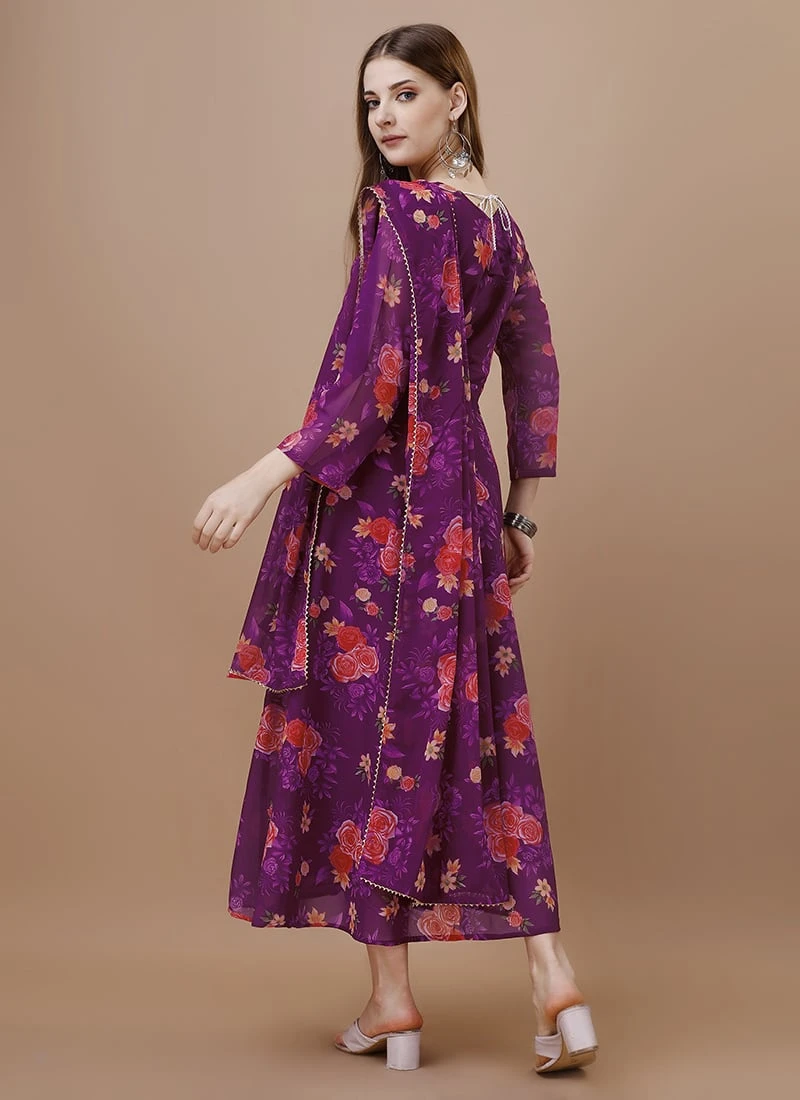 The faux georgette fabric used in this dress is lightweight and breathable making it suitable for both daytime and evening events. It drapes beautifully and flows gracefully as you walk creating a sense of movement and fluidity. The fabric is also easy to care for ensuring that the dress retains its vibrant color and shape even after multiple wears.