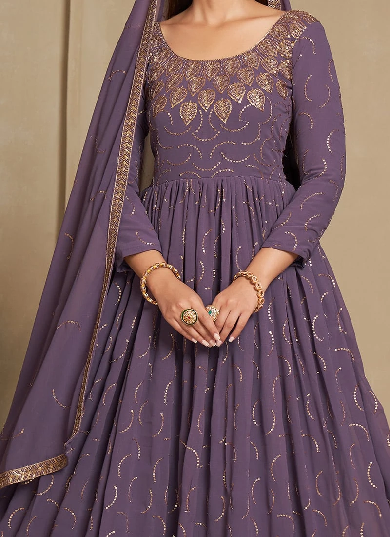 Elevate your style with the timeless elegance and enchanting allure of Lavender Faux Georgette Sequins Dresses and Gowns. Crafted to perfection these exquisite garments seamlessly blend classic sophistication with a touch of glamour making them the perfect choice for a variety of occasions.
