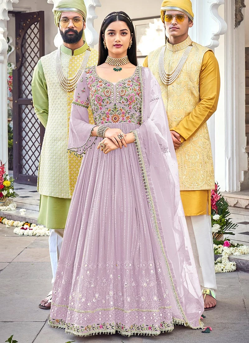 Lavender Georgette Embroidered Designer Anarkali Suit Festive Wear