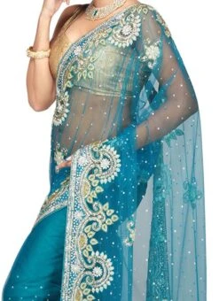 Comes with unstitched blouse fabric. To have the blouse stitched, please select the custom tailoring options. Blouses with elaborate patterns and colors are used for photo-shoot. Color and pattern of the blouse might not be as shown in the image.
