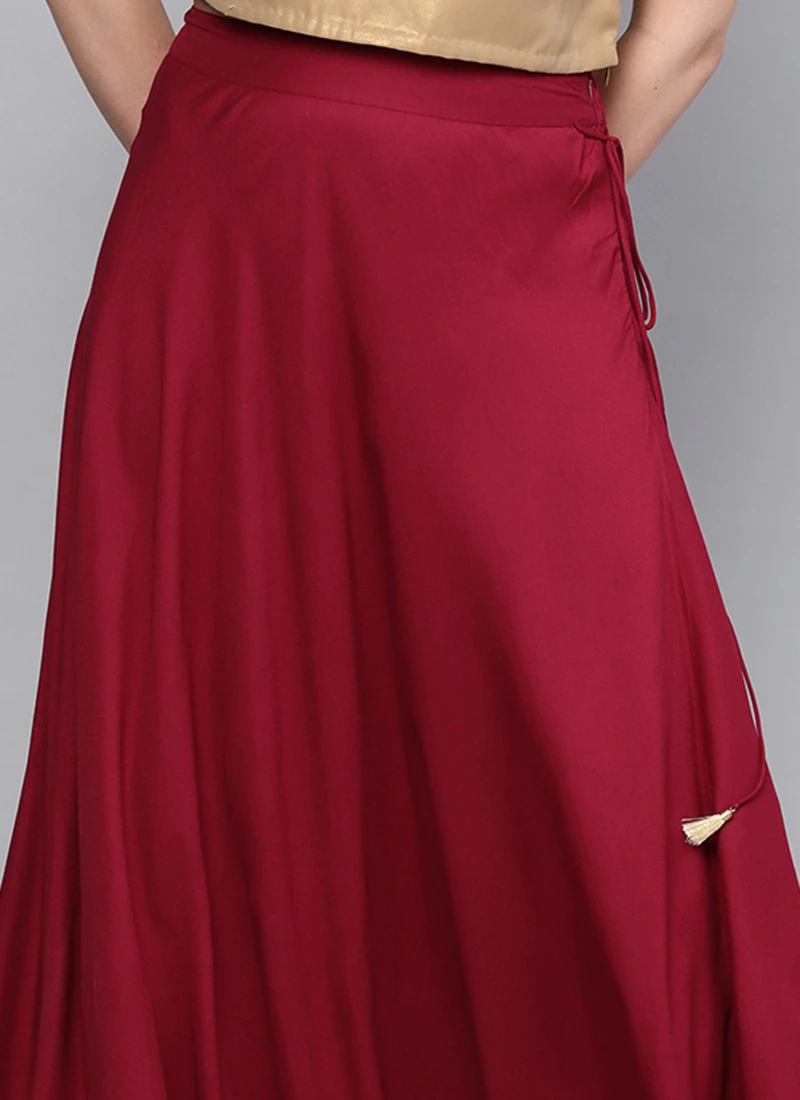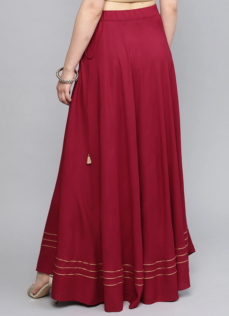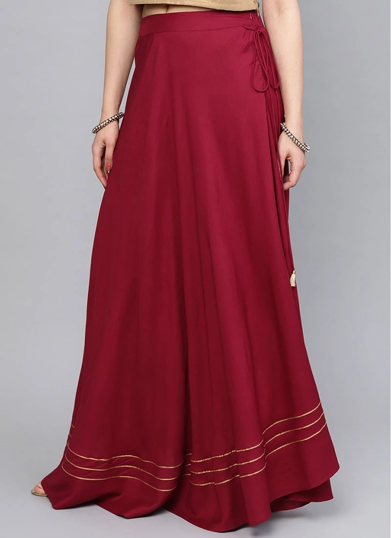 Maroon blended cotton skirt has plain soild patterns on the skirt.