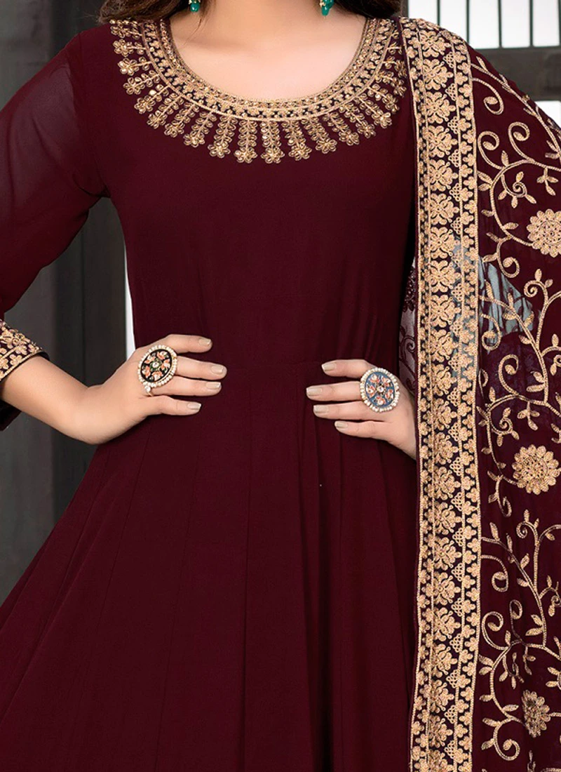 Maroon Georgette Embroidered N Stones Anarkali Suit Party Wear