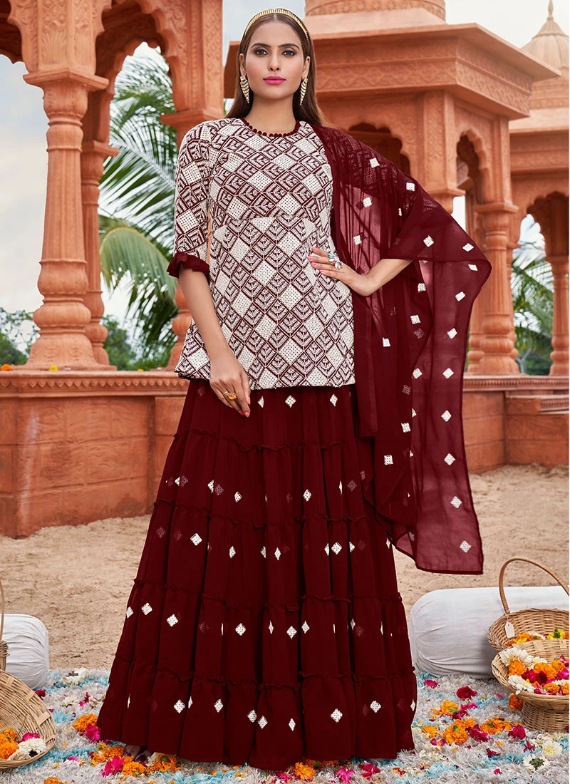 Comes with semi -stitched lehenga, un stitched choli and dupatta fabric. To have it stitched, please select the custom tailoring options. Lehenga with elaborate patterns and colors are used for photo-shoot. Color and pattern of the lehenga might not be as shown in the image.