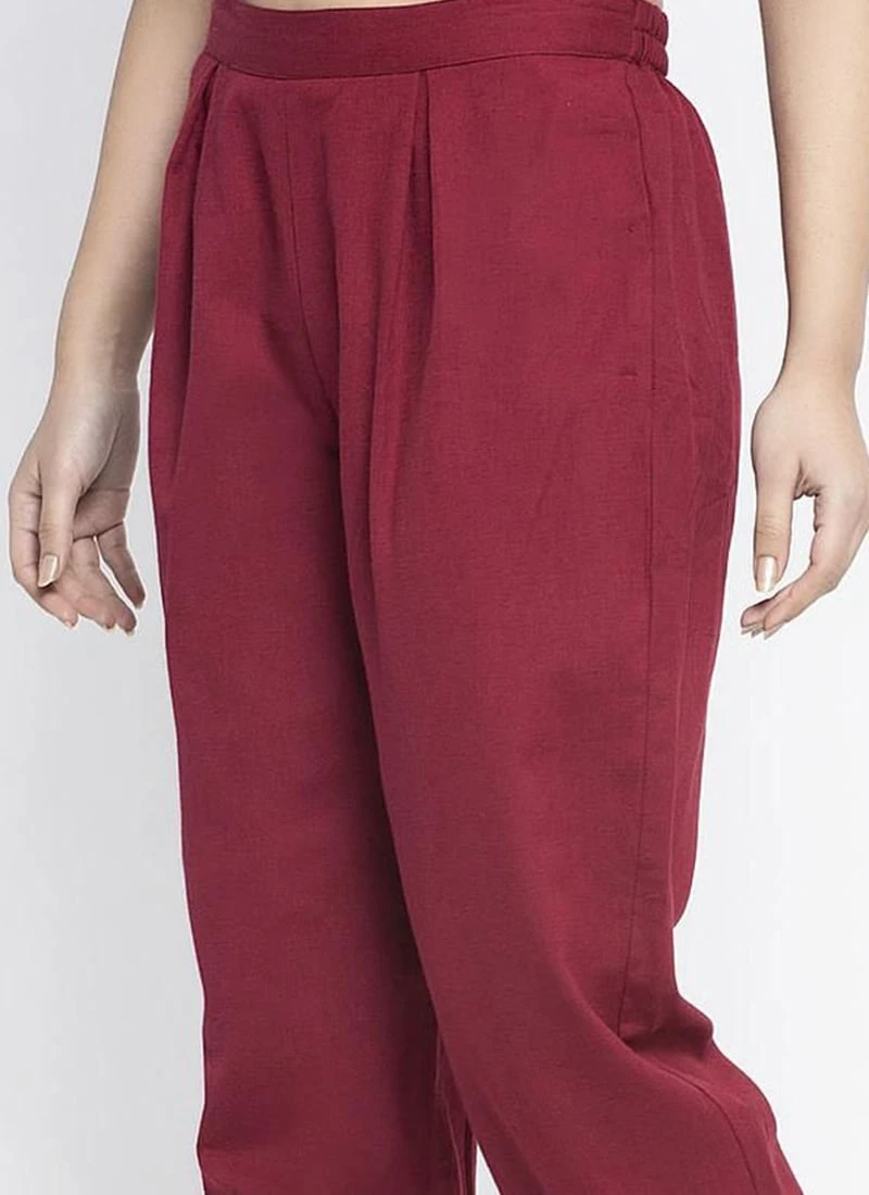 An remarkable maroon rayon straight pant will make you appear highly stylish and graceful. The buttons at the bottom looks chic and ideal for any affair.