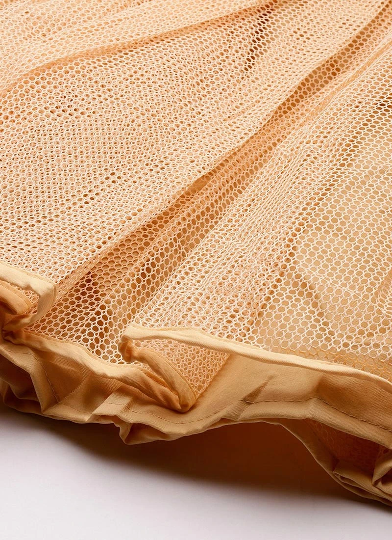 Butter Yellow Net Thread Embroidery Saree Party Wear