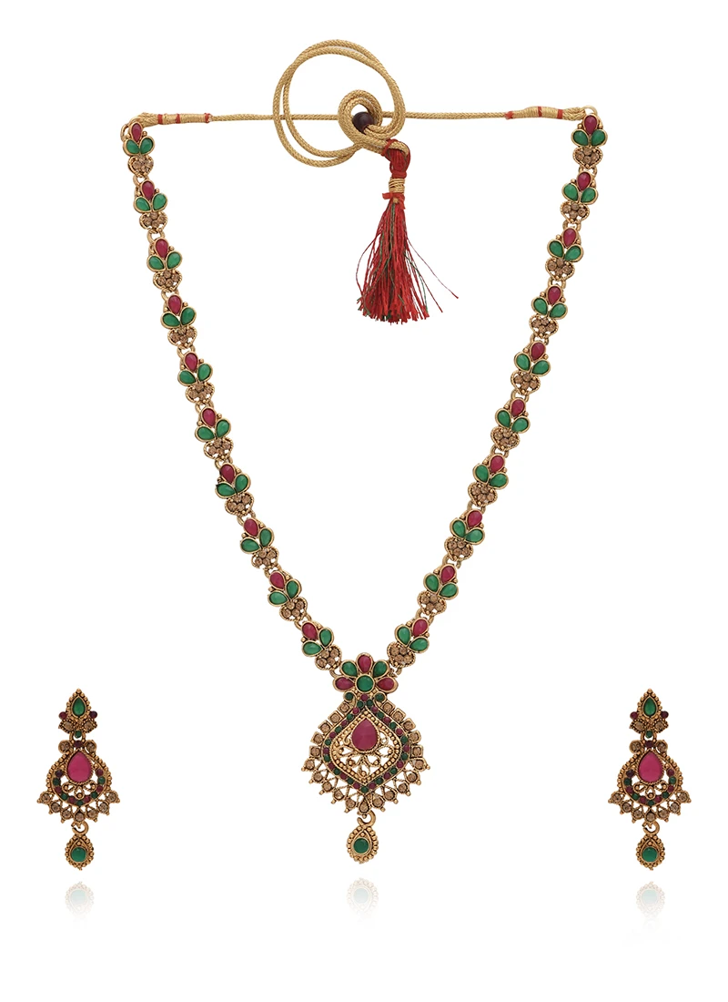 Note:The Earring length is 6.5 inches, width is 3 Inches, Weight is 20 gms. The necklace length is 10.5 inches, weight is 80 gms.