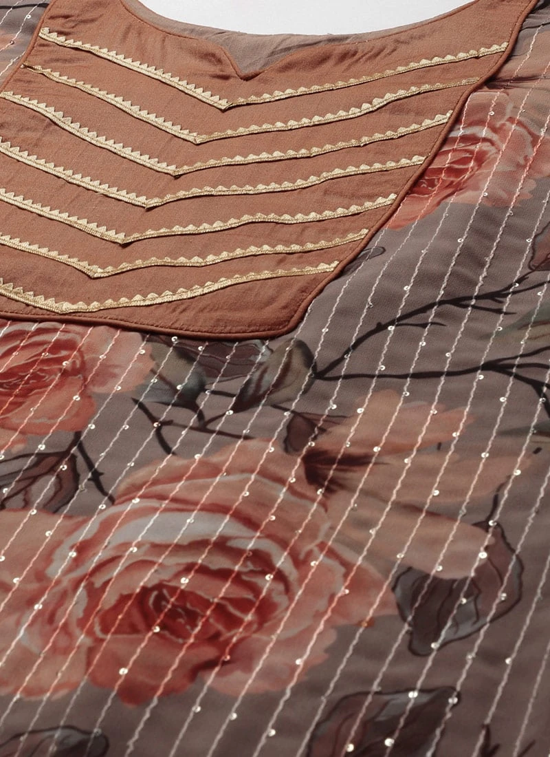 Multicolored Georgette Printed Embroidered Kurti Set Festive Wear After Six Wear