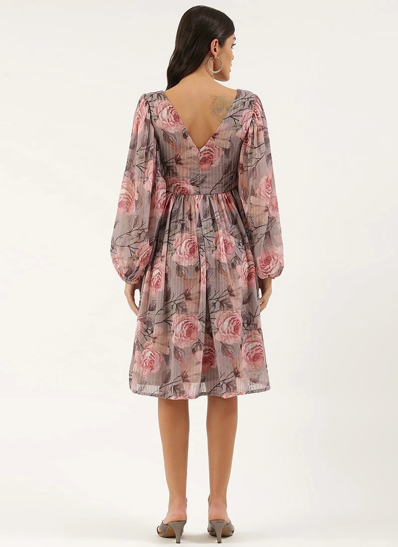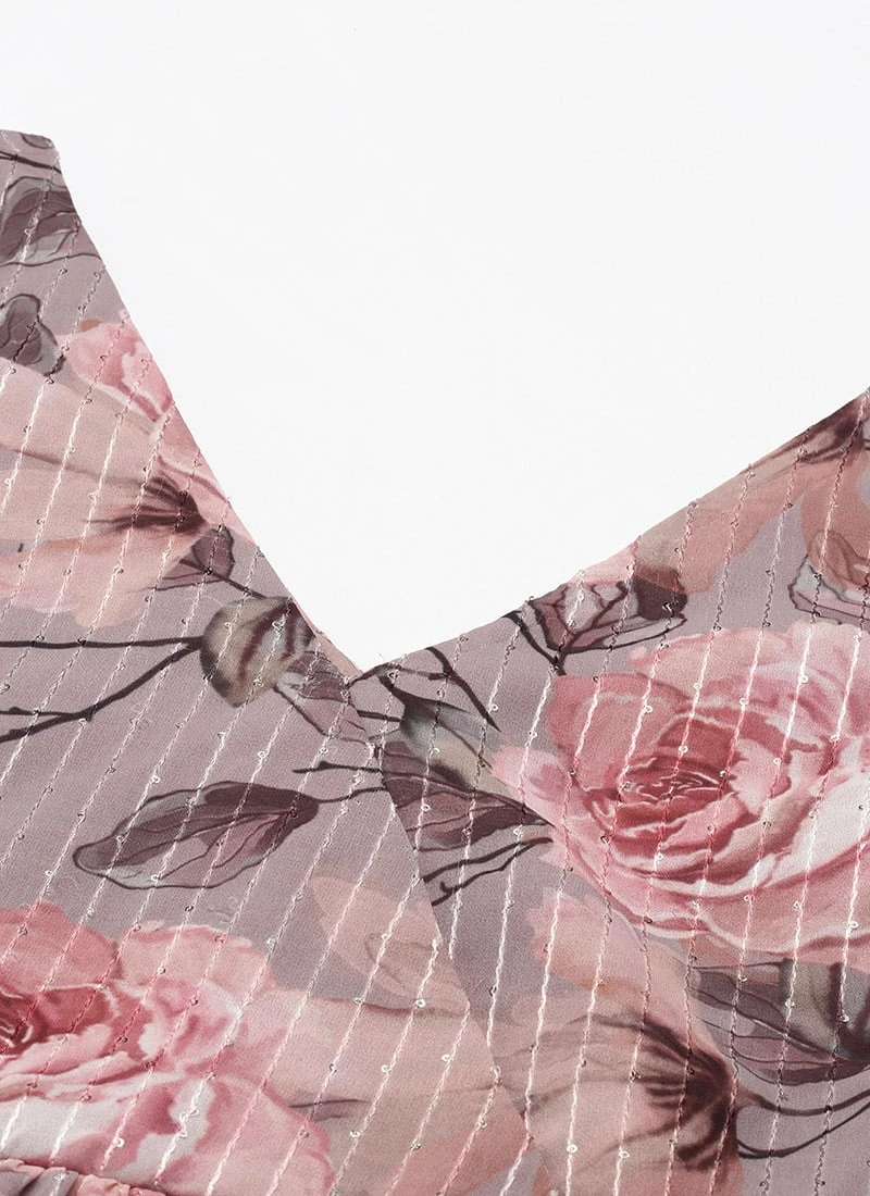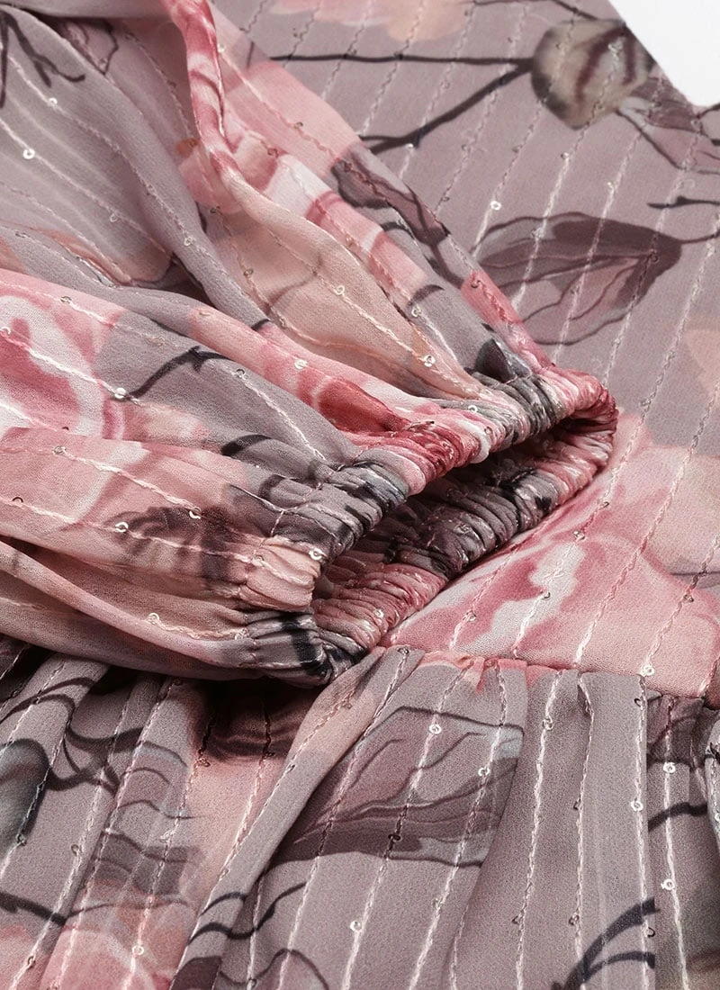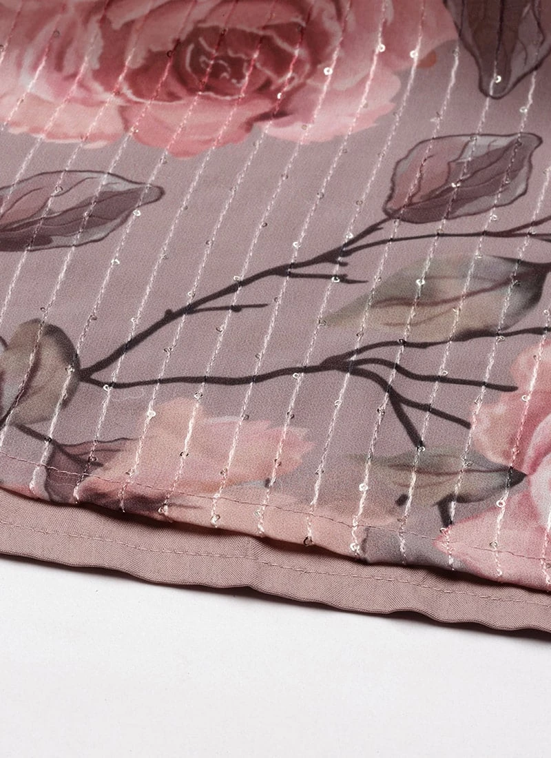 Multicolored Georgette Printed N Embroidered Maxi Dress Festive Wear