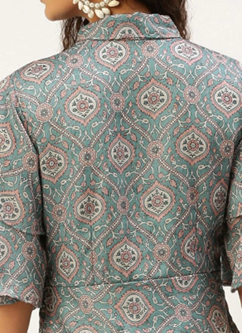 Multicolored Printed Modal Satin Pleated Dress After Six Wear