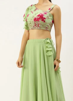 Multicolored Sequins N Green One Shoulder Lehenga Set Festive Wear -ZariGrace Shop Multicolored Sequins N Green One Shoulder Lehenga Set GHBS02205089 u