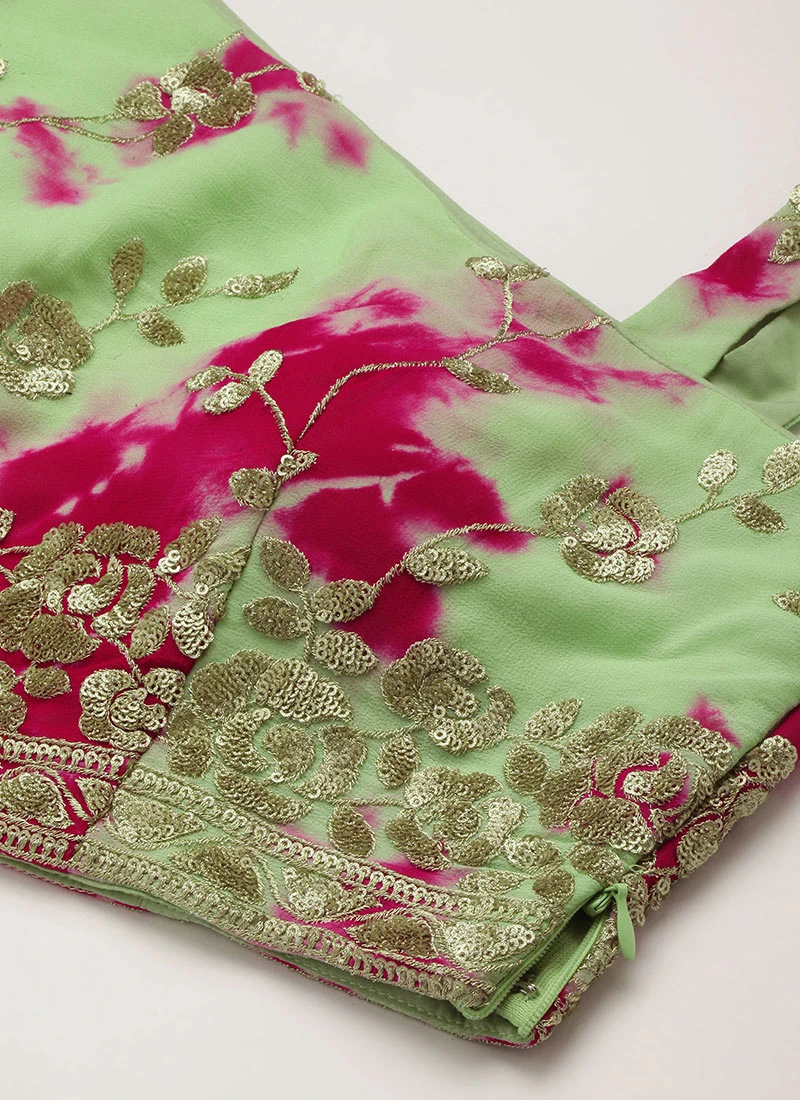 Multicolored Sequins N Green One Shoulder Lehenga Set Festive Wear - Image 8