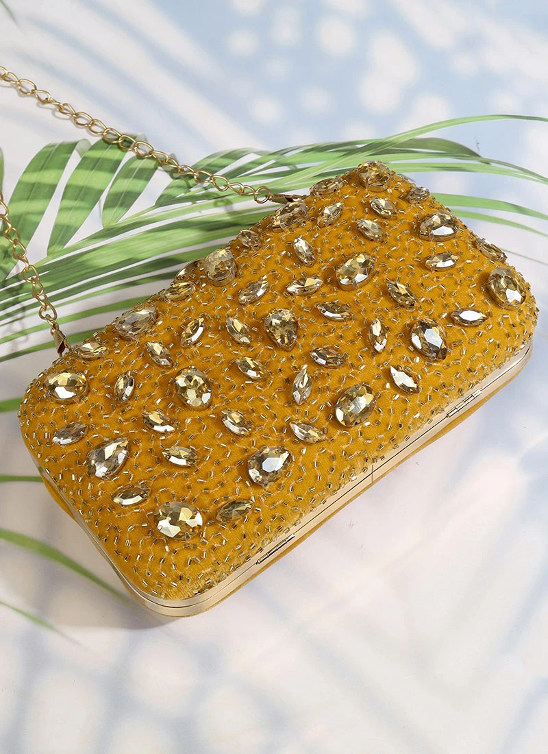 The intricate details elevate this clutch suit to a realm of unparalleled sophistication. Delicate embroidery perhaps in a contrasting shade or subtle metallic thread adds a touch of glamour without overwhelming the overall design. The embroidery could be inspired by nature featuring motifs like blooming flowers or graceful vines enhancing the inherent beauty of the mustard velvet.
