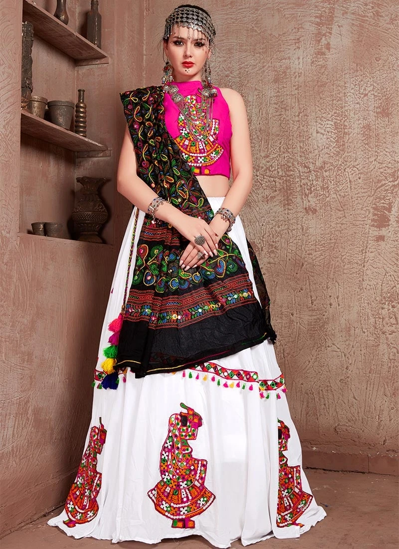 This product consists of semistitched lehenga, choli and dupatta fabric. This can be stitched using the custom tailoring options below. To buy semi-stitched fabric, just choose the unstitched option.