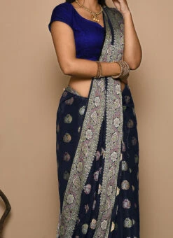 Navy Blue Banarasi Silk Zari Work Saree Party Wear