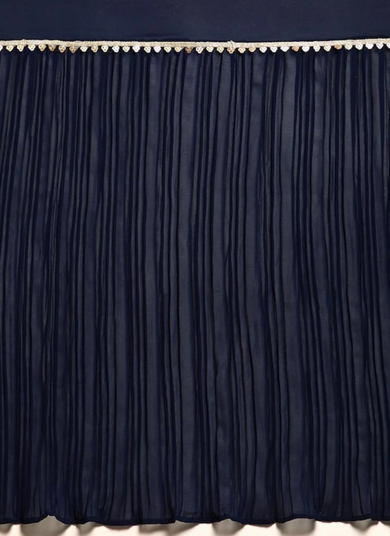 Navy Blue Georgette Pleated Ruffle Saree Festive Wear