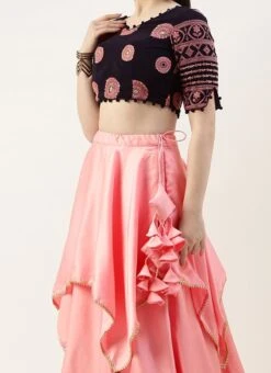 Navy Blue N Pink Embroidered Lehenga Set Festive Wear