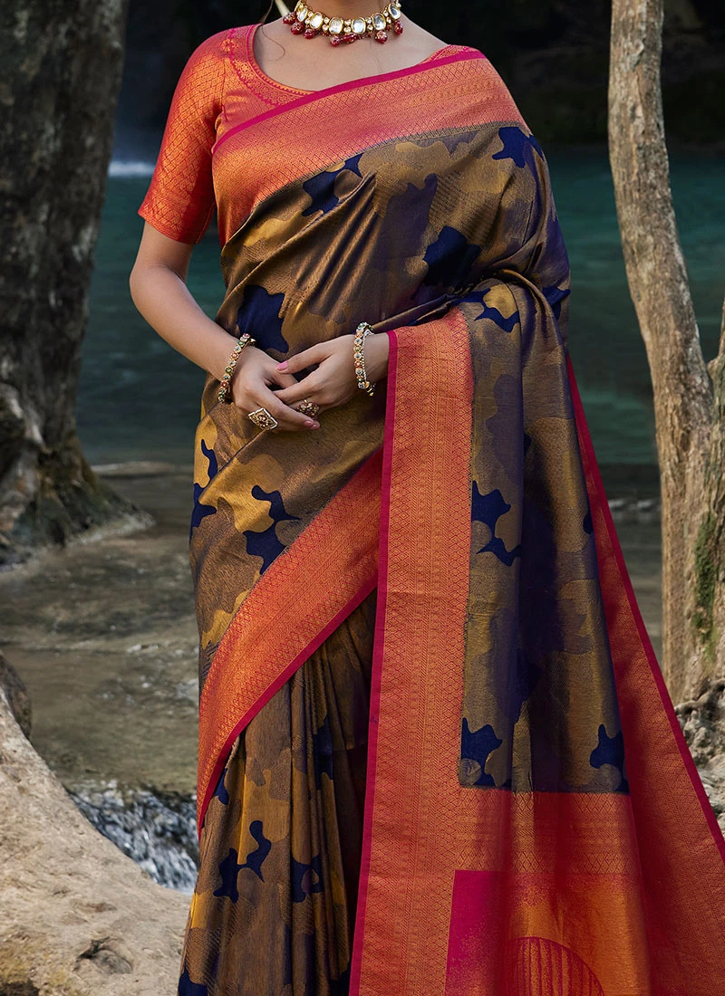 Navy Blue Soft Kanchipuram Silk Weaving Saree Festive Wear
