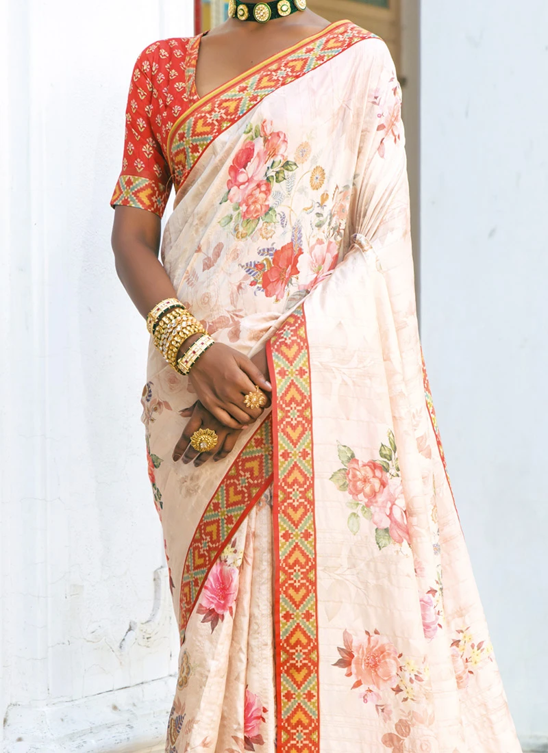 In summary the OffWhite Art Silk Patola Saree is a symbol of timeless beauty and cultural heritage. Its intricate craftsmanship luxurious fabric and versatile design make it a musthave in every womans wardrobe. Embrace the rich tradition of patola weaving with this saree and let its elegance enhance your grace and charm on every occasion.