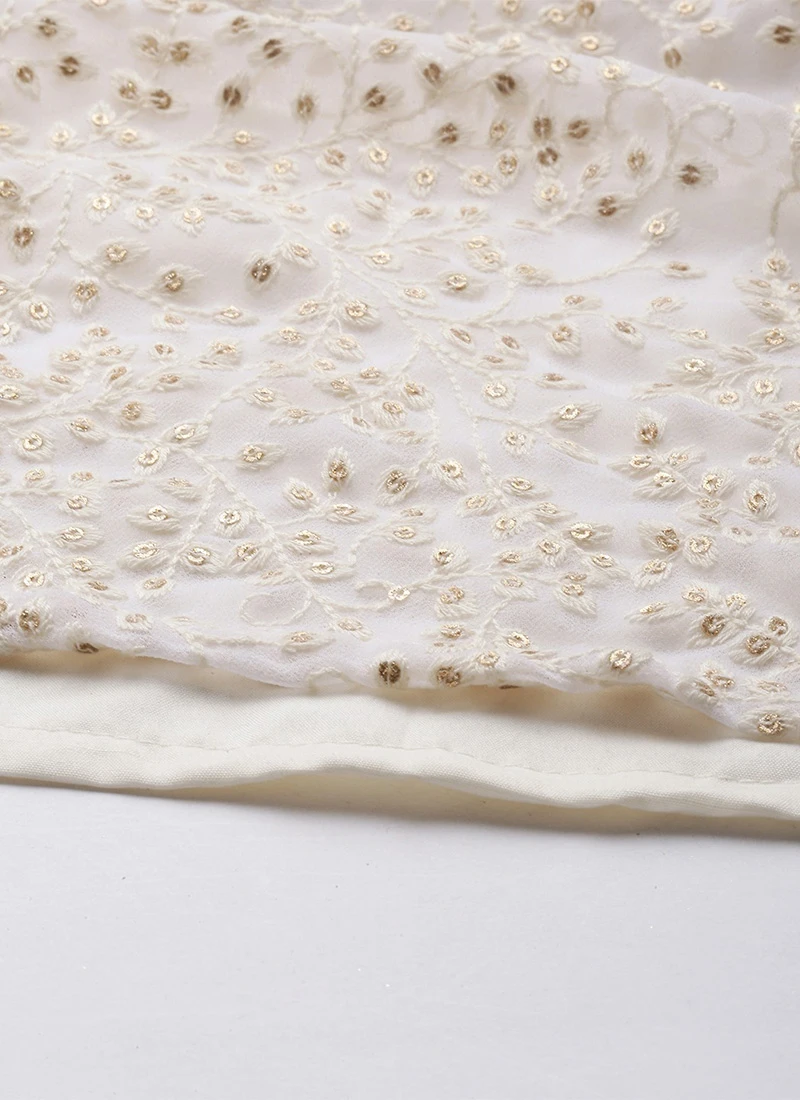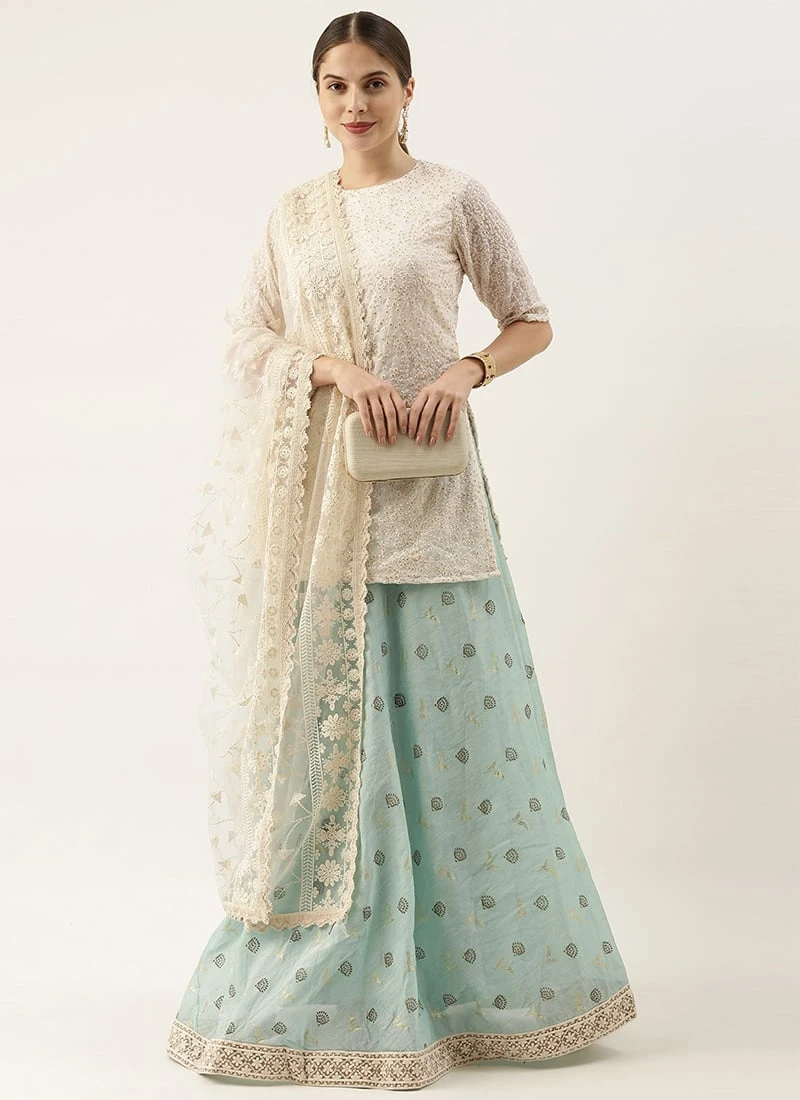 Off White Embroidered Long Blouse Lehenga Festive Wear
