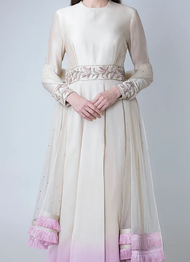 Grey N Green Silk Zari Embroidery Work Half N Half Saree Party Wear