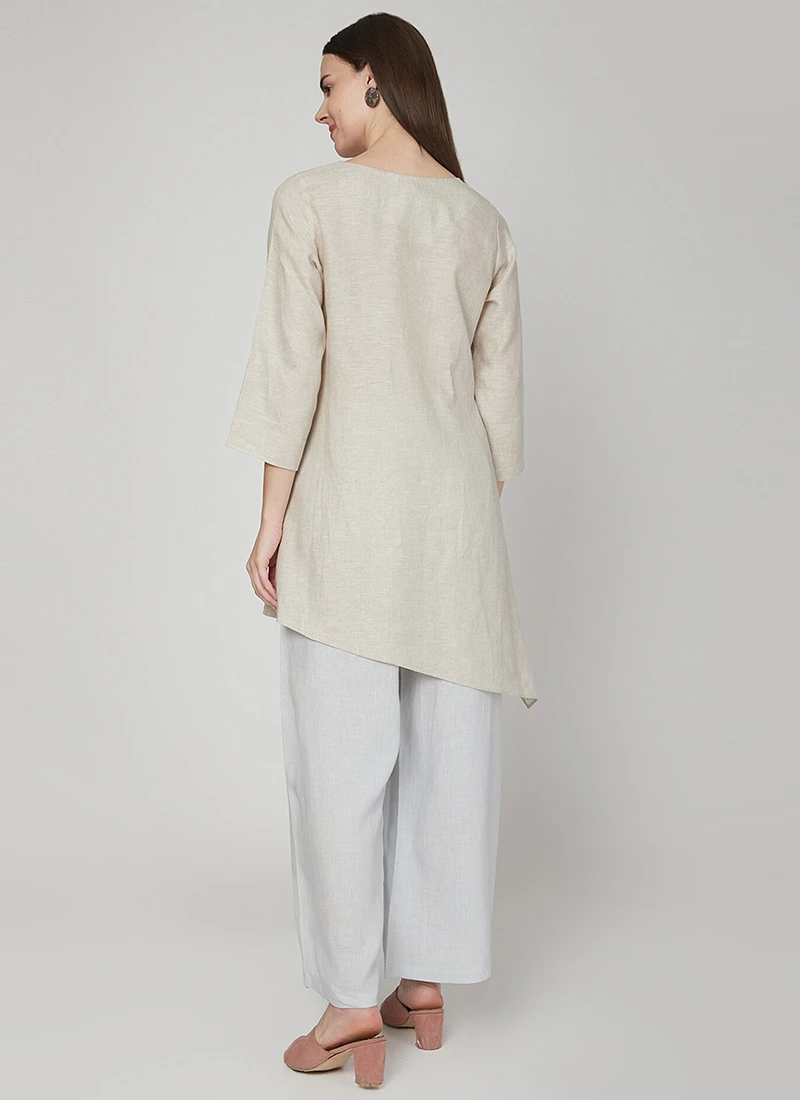 Offwhite Linen Kurta Palazzo Set Work Wear - Image 3