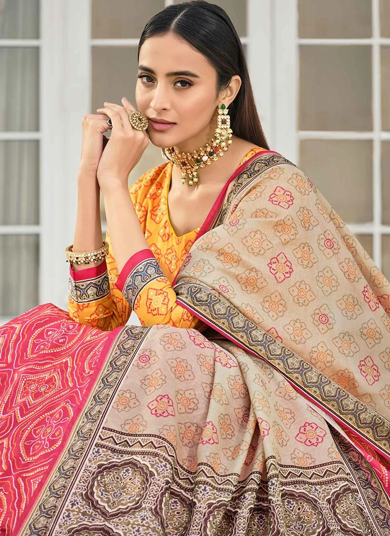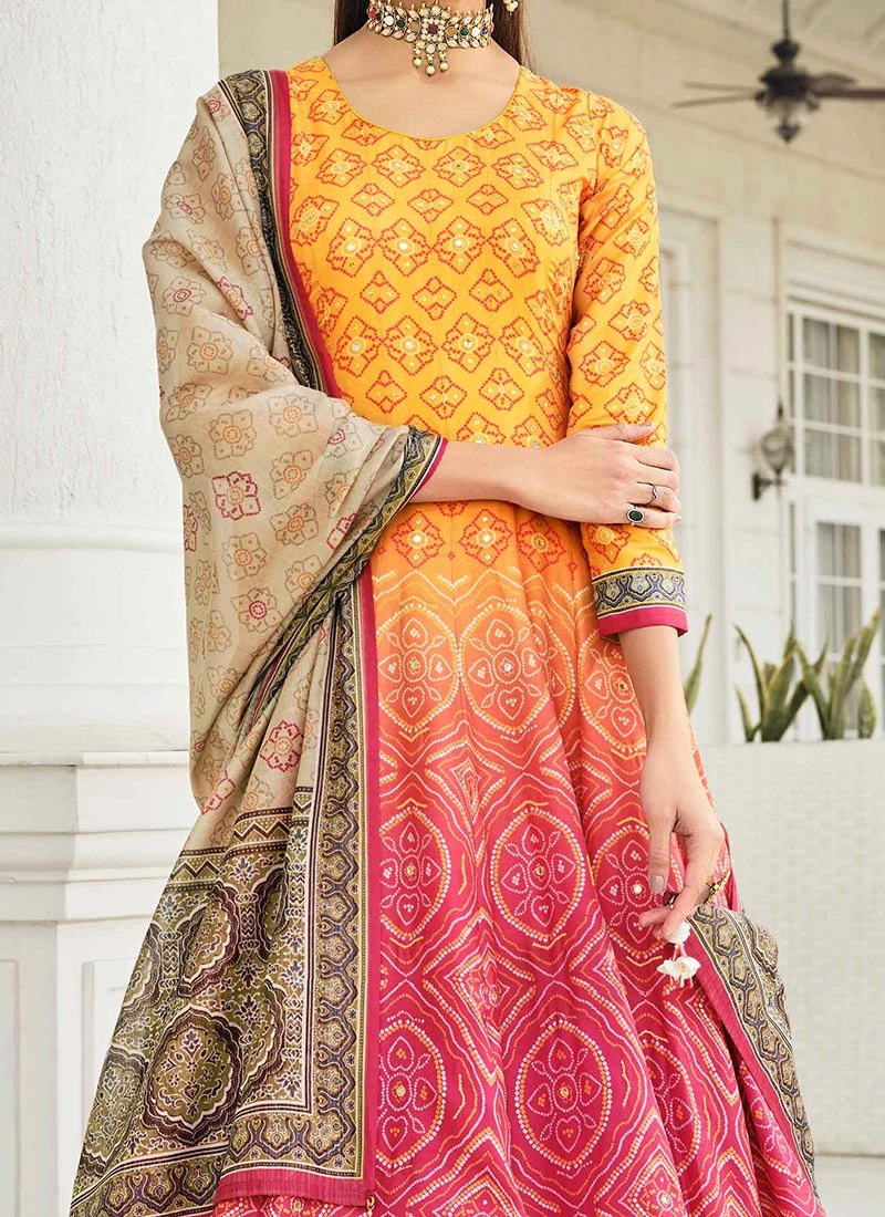 Orange a color associated with enthusiasm creativity and joy comes to life in art silk fabric. The material has a smooth texture that drapes beautifully accentuating the wearers silhouette. It reflects light gracefully adding a subtle sheen to the garment. The combination of this lively color and the rich texture of art silk creates a stunning visual appeal.