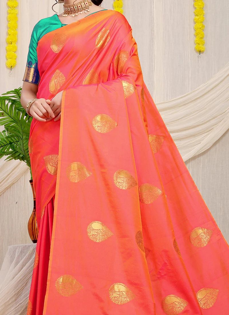 Orange Color Patola Silk Zari Weaving Work Saree Party Wear