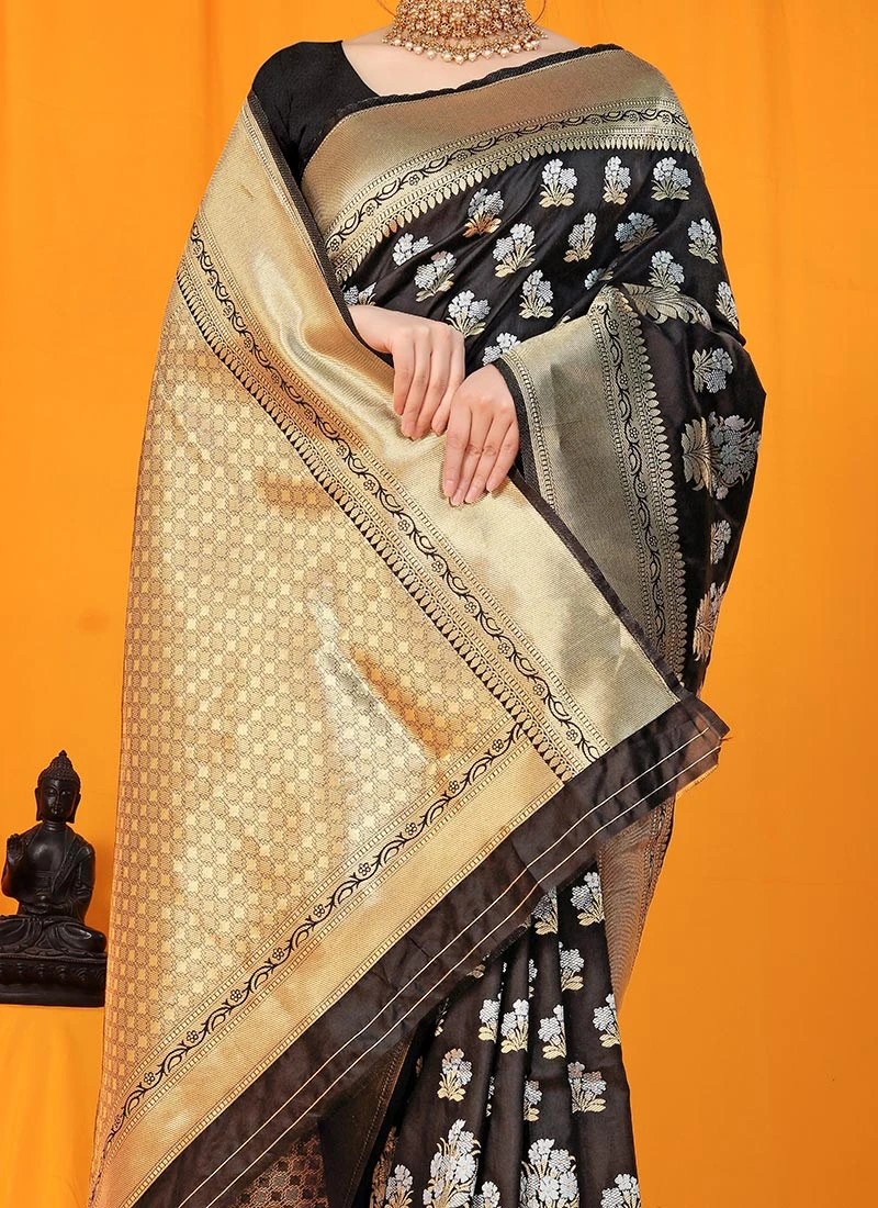 Patola Silk Black Color Zari Weaving Work Saree Festive Wear