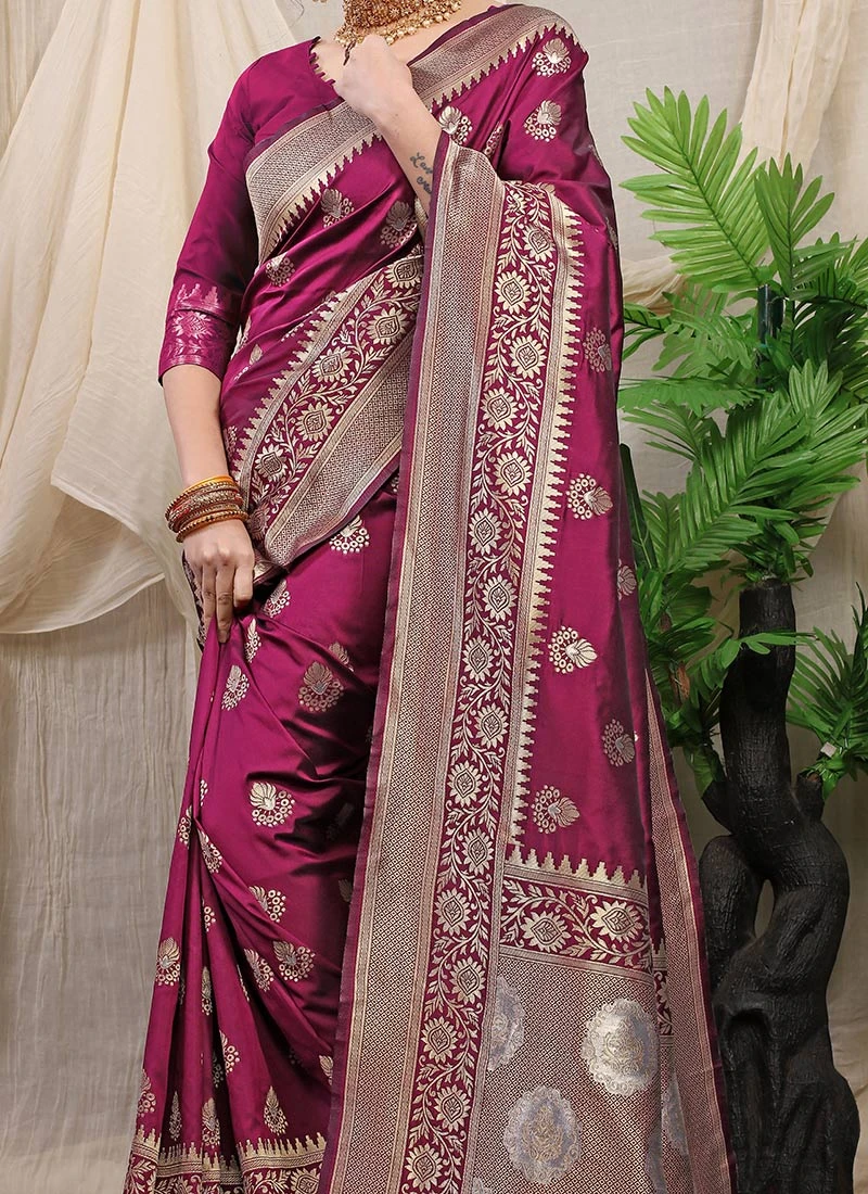 Patola Silk Wine Color Zari Weaving Work Saree Festive Wear