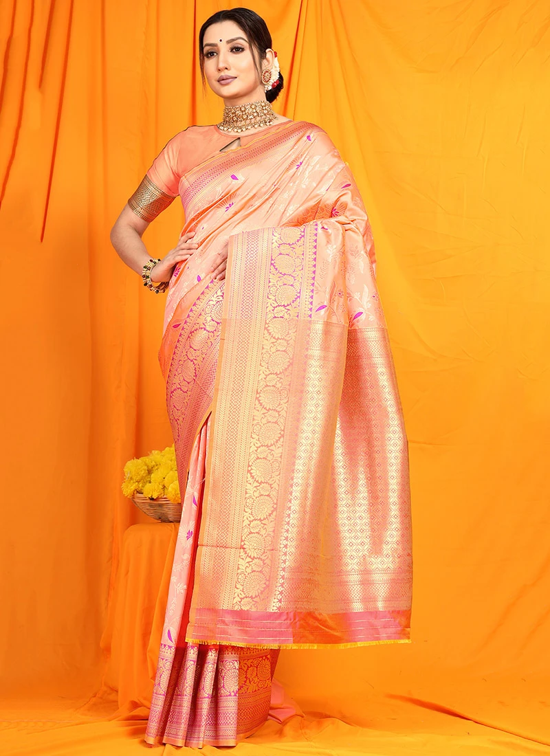 Peach Color Patola Silk With Zari Weaving Work Saree Party Wear
