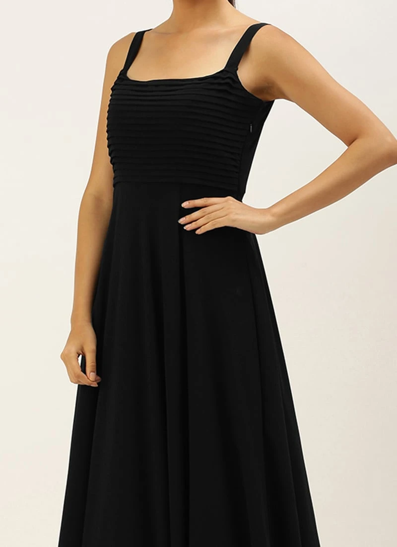 Presenting peach embroidered gown with jacket ,features a black georgette natural waist yoke front and back normal strap neck , sleeveless, front yoke pleated, side zip opening, black georgette half circular floor length gown and peach georgette embroidered embellishment on flare till calf to floor length. On top of that peach embroidered jacket front cut out and back close neck with full sleeve, under bust length..