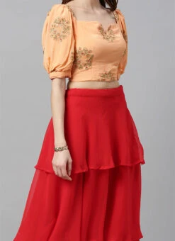 Be the first to review “Peach Embroidered Layered Lehenga Set Party Wear” Cancel reply