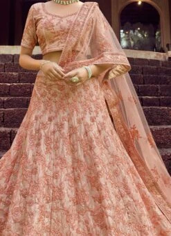Peach Georgette Embroidered N Stones Umbrella Lehenga Wedding Wear