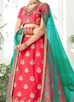 This product consists of semistitched lehenga and dupatta, unstitched choli fabric. This can be stitched using the custom tailoring options below. To buy semi-stitched fabric, just choose the unstitched option.